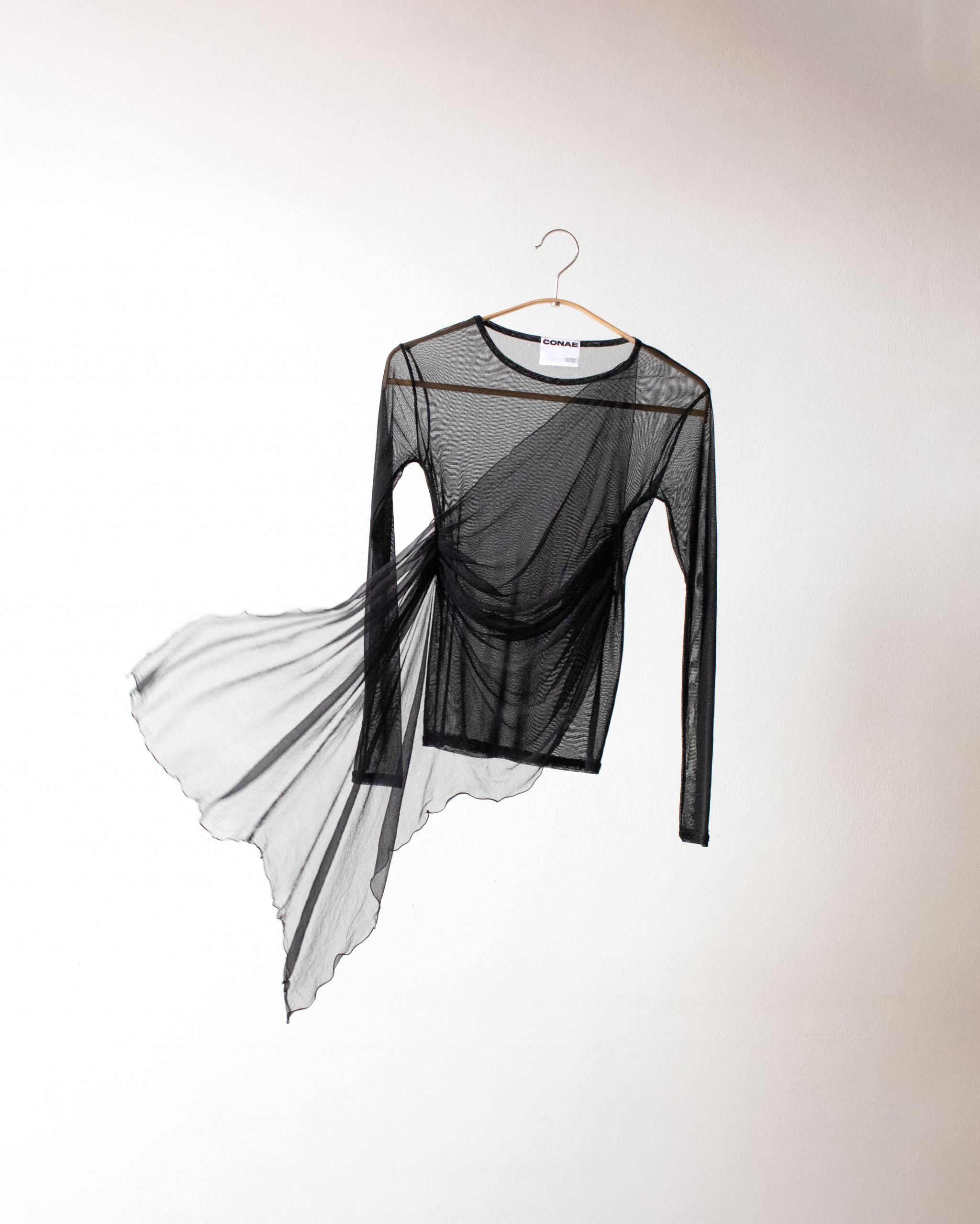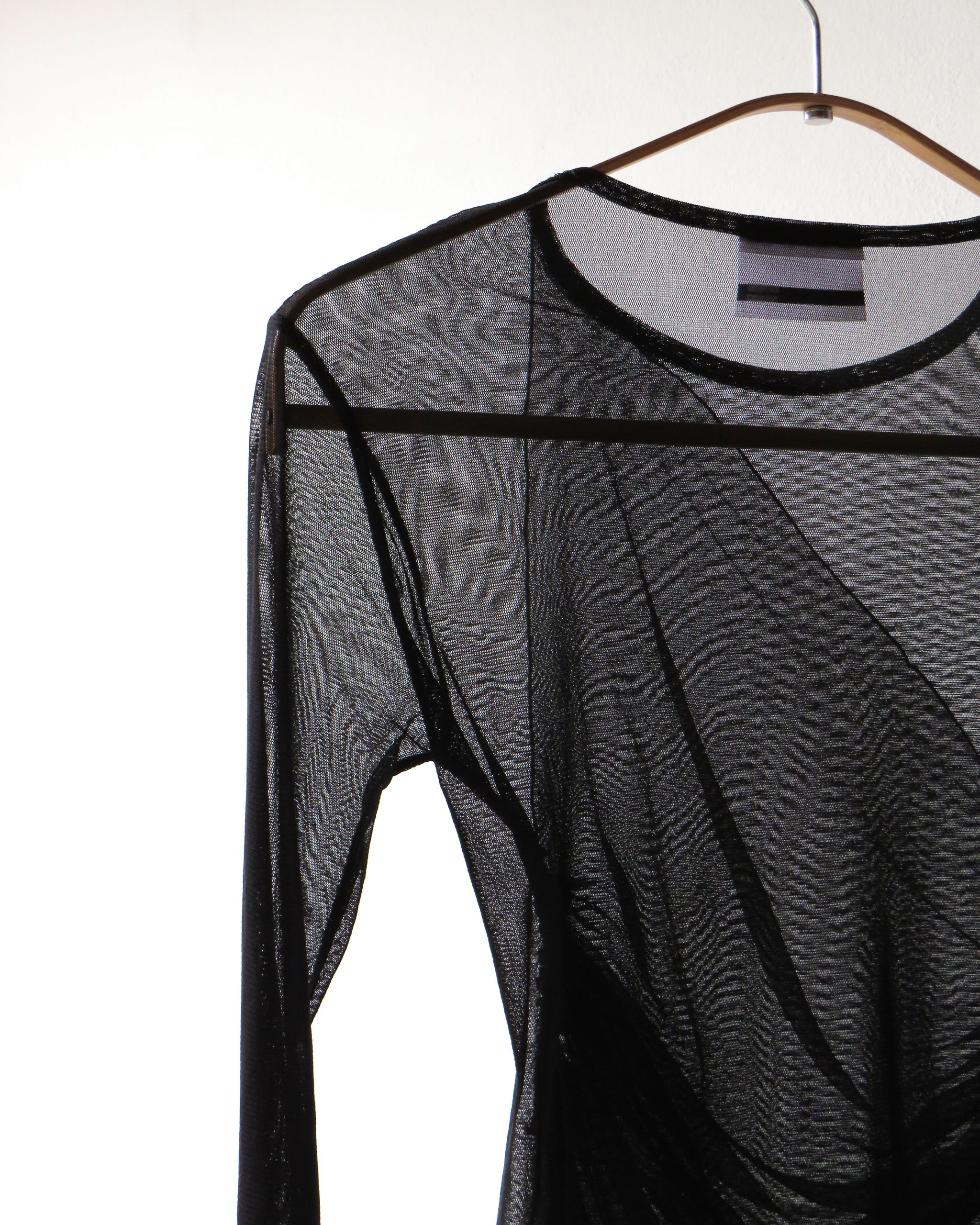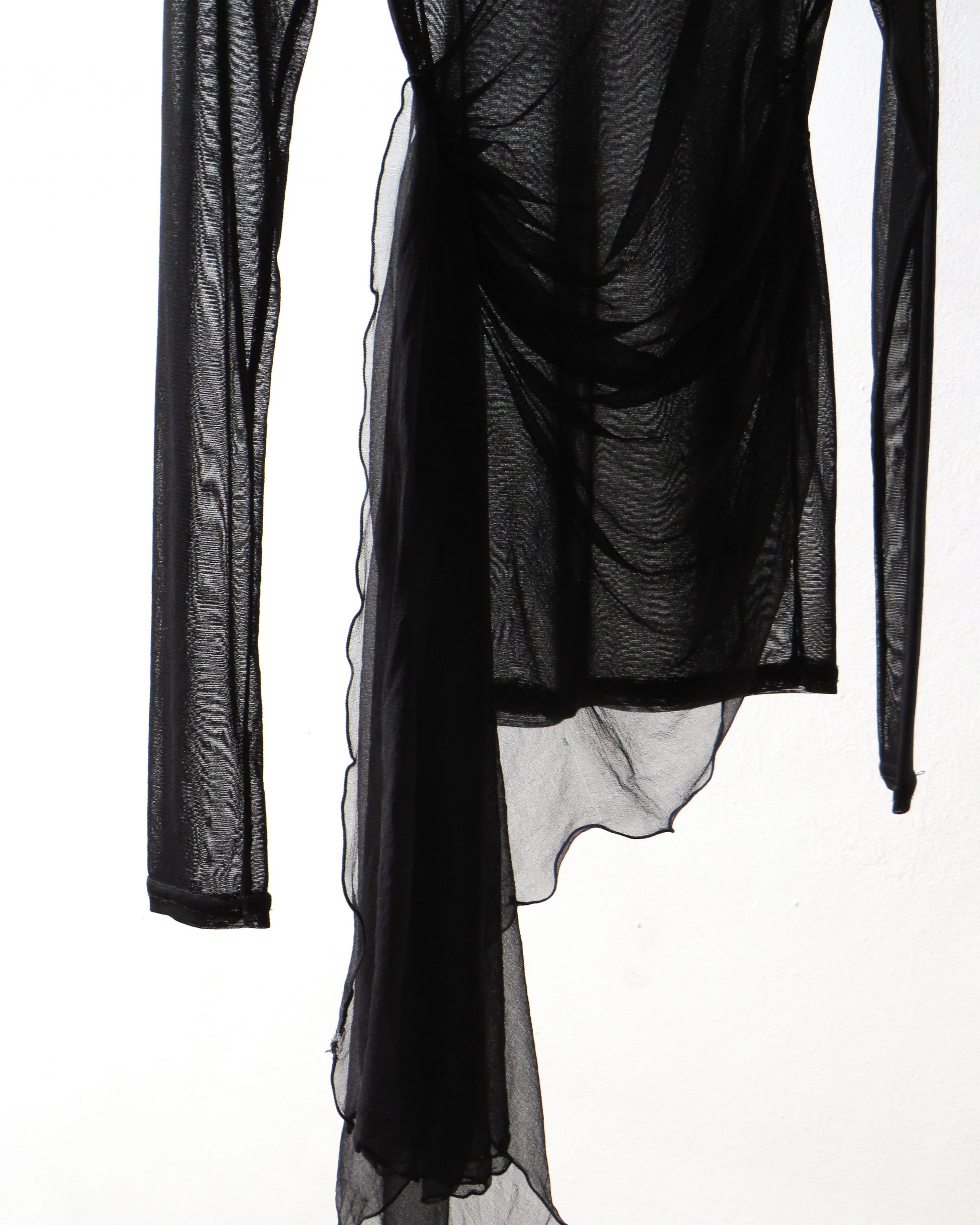 Top de tul manga larga con pieza de gasa drapeada en el pecho.