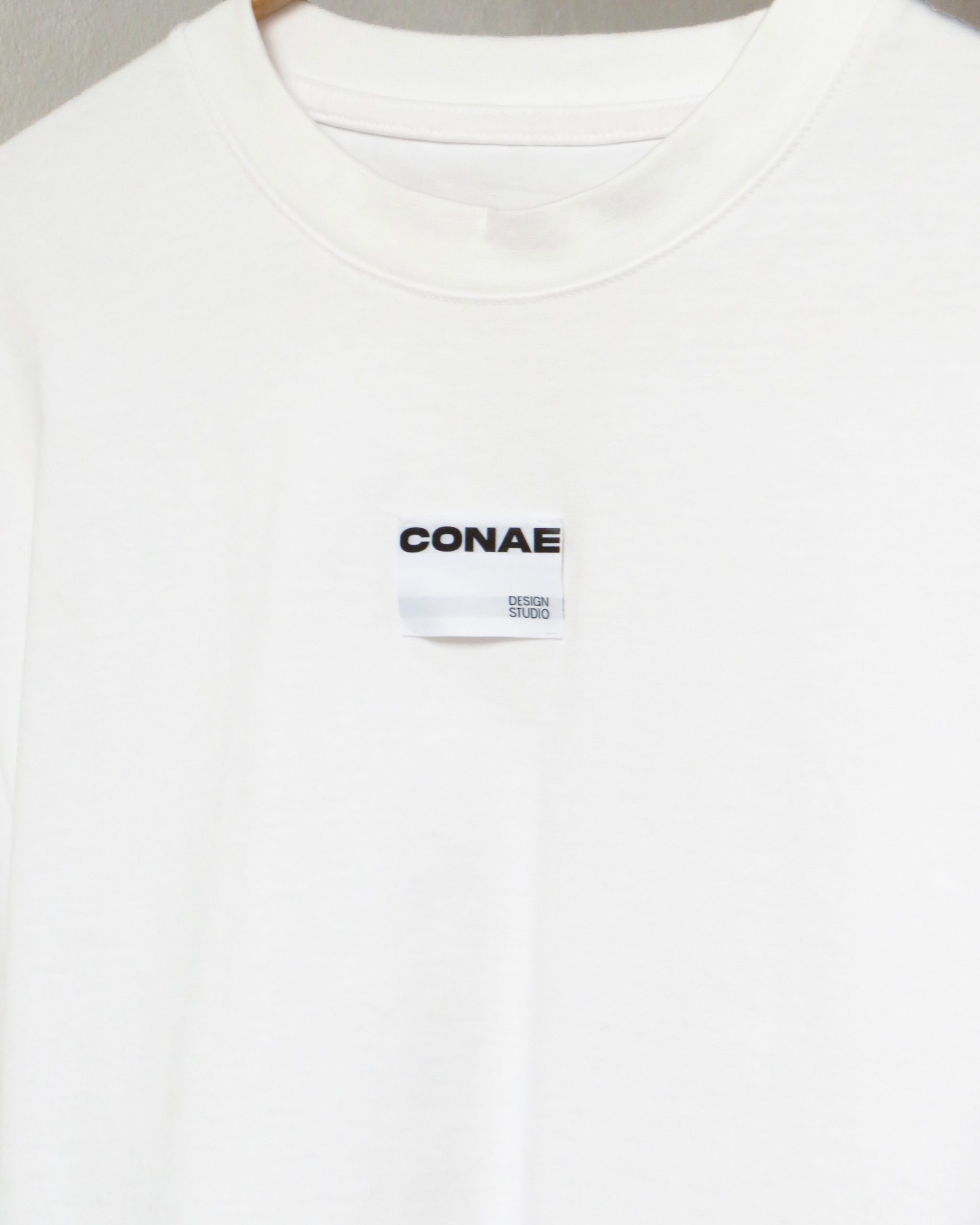 Camiseta corporativa con logo en la espalda, letras creadas con retales.